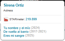 Índice de Popularidad Estelar de IMDb: Semana del domingo 25 de mayo de 2025 al domingo 1 de junio de 2025. Visible desde el lunes 2 de junio de 2025 hasta el domingo 8 de junio de 2025.